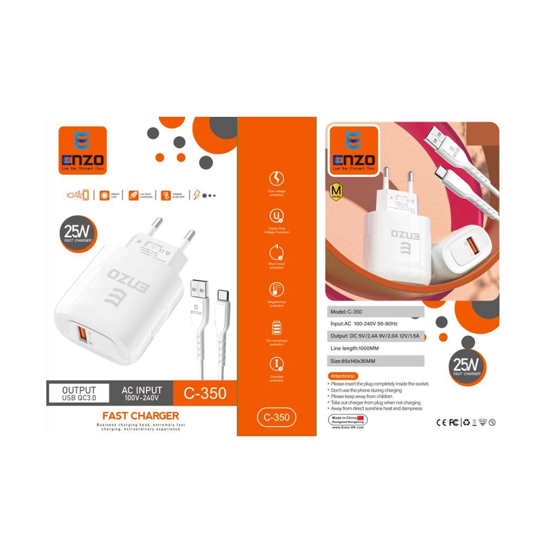 شارژر دیواری 25 وات ENZO C-350 + کابل شارژ