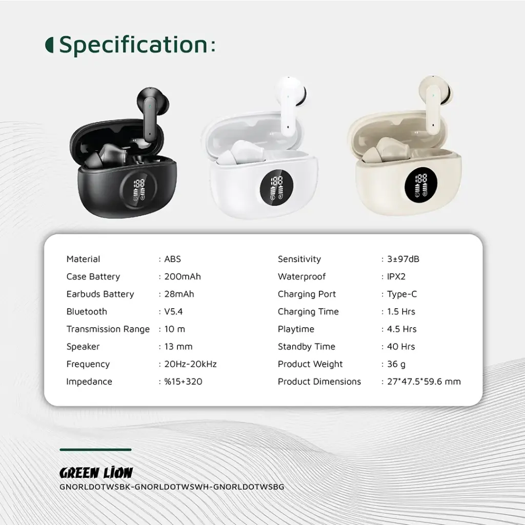 ایرباد Green Lion Orlando True Wireless با طراحی سبک و مدرن، ترکیبی از کیفیت صدا، راحتی استفاده و امکانات پیشرفته را در اختیار کاربر قرار میدهد. این محصول برای استفاده روزمره، ورزش و حتی محیطهای کاری طراحی شده و با ویژگیهای متنوع خود، یک همراه همهجانبه محسوب میشود.