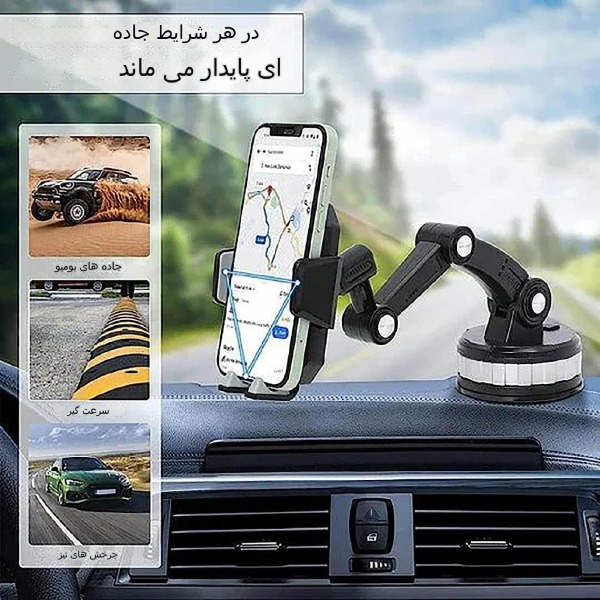 هولدر موبایل خودرو با قابلیت نصب سریع ( موقت و کاملا محکم از طریق چسبک های مکنده ) بر روی میز، شیشه و داشبورد و یا هر سطح صاف دیگر، می تواند تلفن همراه شما را به دو صورت عمودی و افقی نگهداری کند.