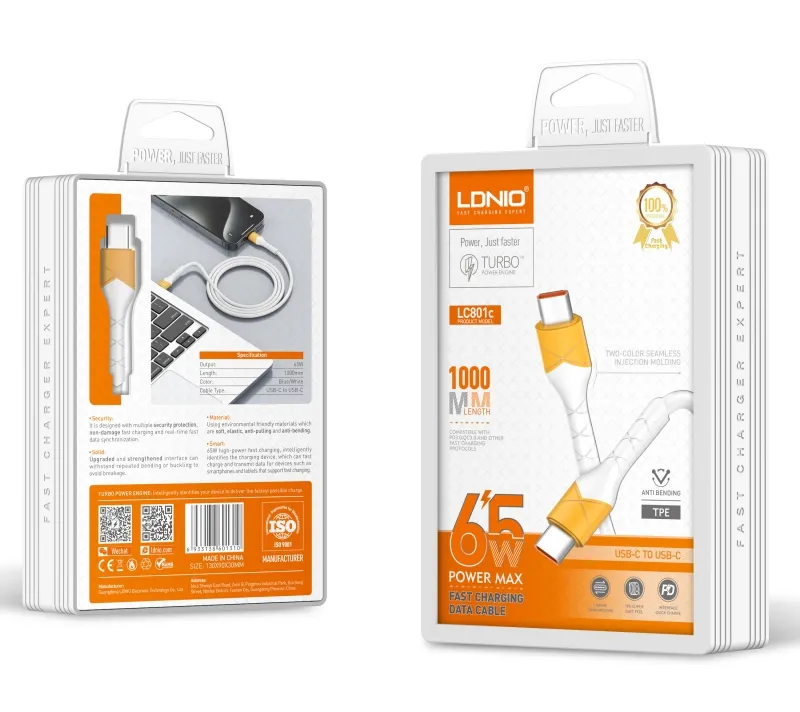 کابل شارژ PD تایپ سی LDNIO LC801c، سرعت و کارایی بالای شارژ را با کیفیت بینظیر ترکیب میکند. مقاوم و بادوام، مناسب برای دستگاههای مدرن شما. با انتقال سریع داده و امکان شارژ ایمن، تجربهای بیدغدغه و مطمئن را به شما هدیه میدهد. هماکنون خرید کنید و از شارژ سریع لذت ببرید!