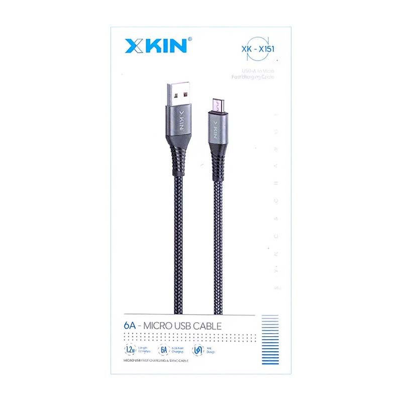 کابل شارژ USB به MICRO مدل XK-151 طول 1 متر ویژگی شارژ 6 امپر BLACK-USB TO MIRCO-120CM-6A